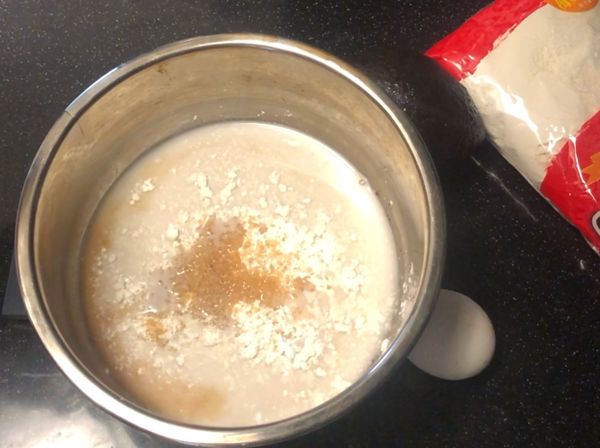 直至沸騰,沸騰後加入過篩麵粉
