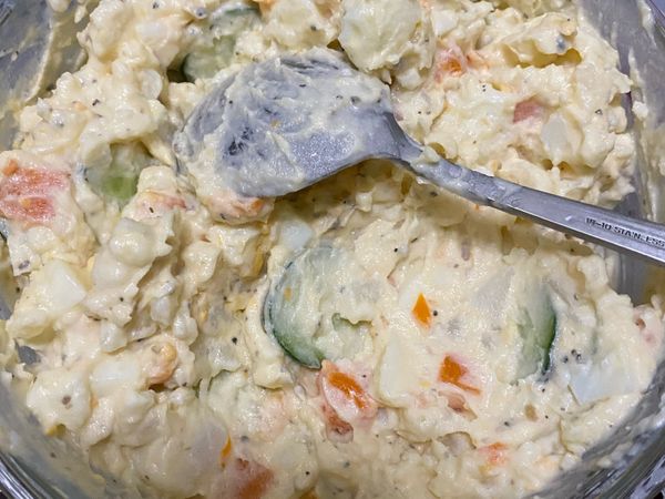 張碧芝 6 食譜 26 粉絲 追蹤 馬鈴薯沙拉三明治 #素食 #蔬食 42 說讚 1 一起做 讚收藏分享分享FacebookLINE複製連結列印 份量 5 人份 時間 30 分鐘 食材 馬鈴薯 一顆 小黃瓜 半條 紅蘿蔔 適量 蛋 二粒 美乃滋 適量 黑胡椒 適量 步驟 小撇步 1.馬鈴薯削皮切片 2.紅蘿蔔削皮切丁 將1、2放入電鍋蒸煮 3.小黃瓜🥒切成薄片 4.二粒水煮蛋切丁備用 5.將蒸熟的馬鈴薯壓成泥狀 6.最後將所有材料全部混合,就是一道簡單又快速的料理 1.3 萬 瀏覽 2021/02/01 發表